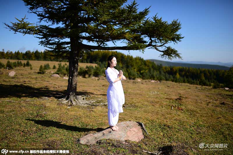 “第一次來到海拔這么高的山上進行瑜伽練習,景色很美,能否很快的靜下心來融入大自然對自己也是一個考驗,”李雨桐說。