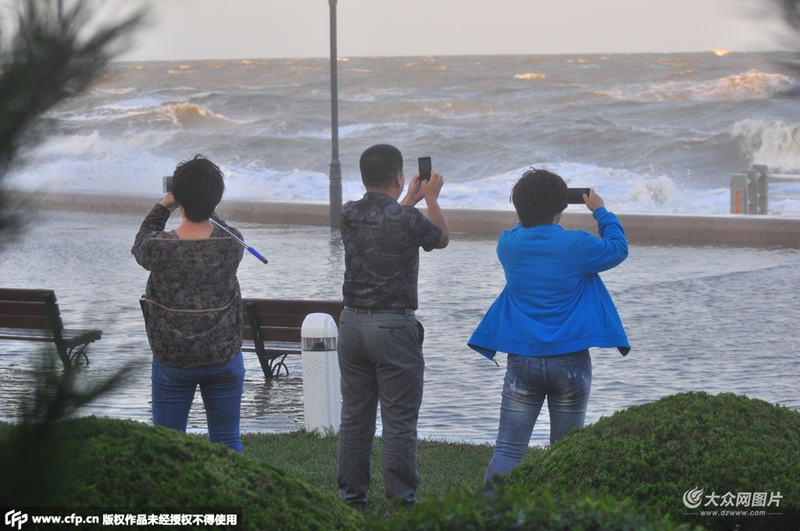 2015年9月29日,山東日照,受今年第21號(hào)臺(tái)風(fēng)“杜鵑”外圍環(huán)流的影響,日照沿海掀起數(shù)10米高巨大的海浪,吸引了眾多游客冒險(xiǎn)拍攝巨浪。