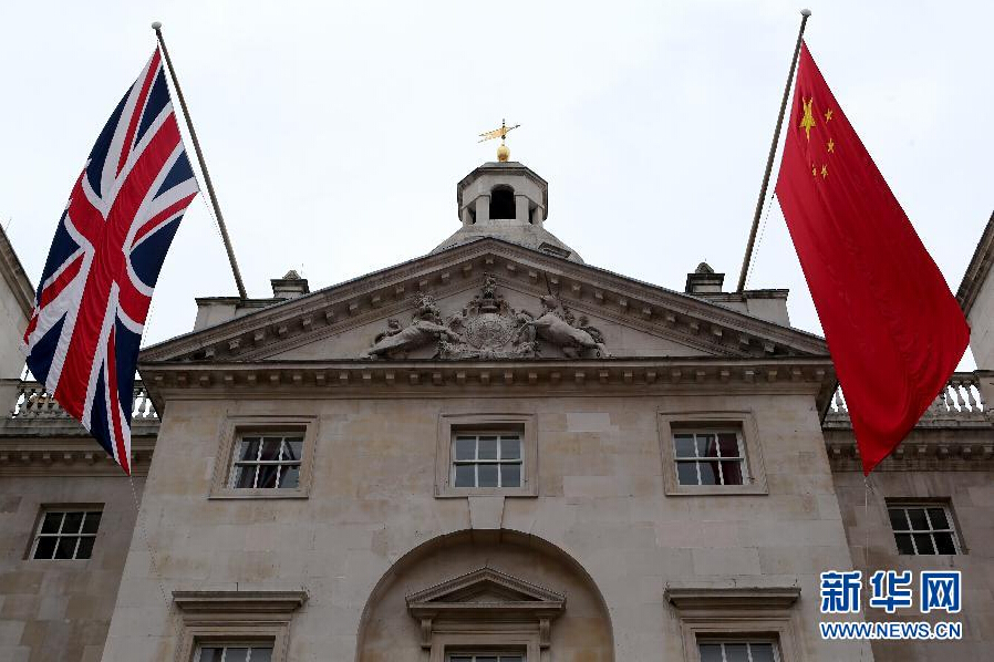 10月17日,在英國(guó)倫敦,中、英兩國(guó)國(guó)旗懸掛在皇家衛(wèi)隊(duì)閱兵場(chǎng)。應(yīng)英國(guó)女王伊麗莎白二世邀請(qǐng),中國(guó)國(guó)家主席習(xí)近平將于10月19日至23日對(duì)英國(guó)進(jìn)行國(guó)事訪問(wèn)。 新華社記者韓巖攝