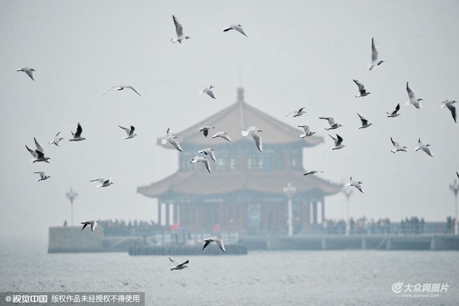 2015年11月08日是立冬,數(shù)百只新近遷回的紅嘴鷗在山東省青島市棧橋上空再次與游客“共舞”,不少游客紛紛拿出手機(jī)給海鷗拍照。據(jù)了解,青島市民每年都會喂食越冬海鷗,在10年內(nèi)數(shù)量增長近50倍,現(xiàn)在每年有10多萬只海鷗遷回青島在近岸越冬,場面蔚為壯觀。