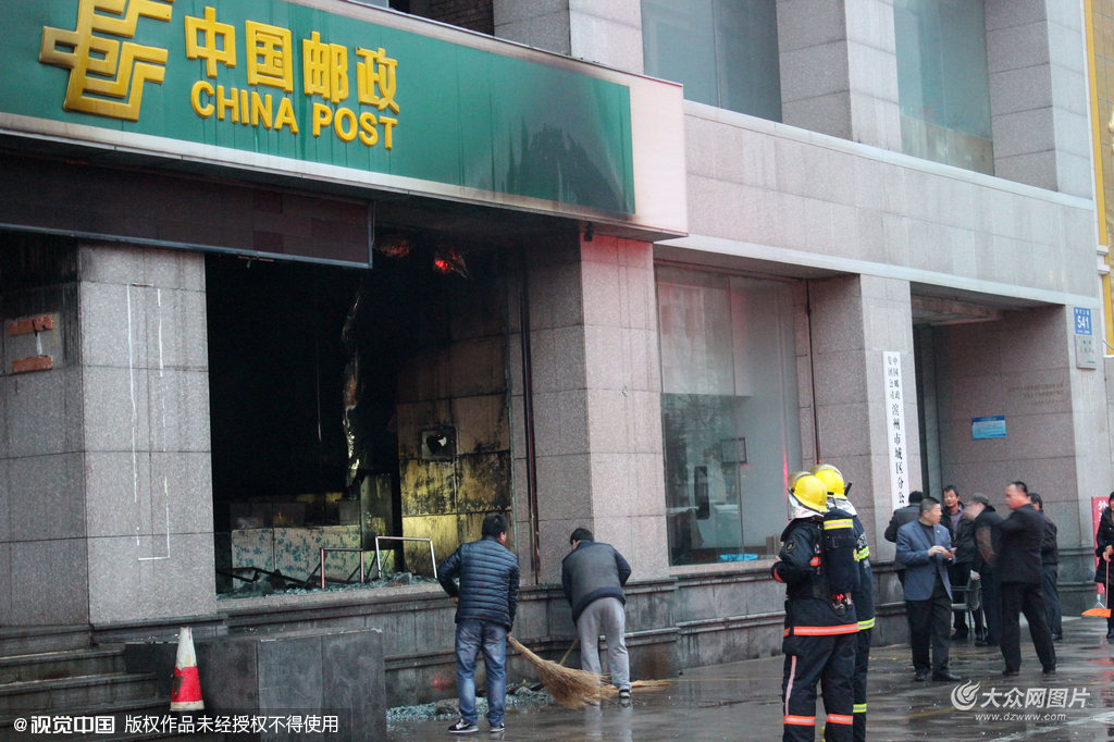2015年11月19日,山東濱州,濱州市郵政局市中支局一快遞包裹樓起火,十余輛消防車出動滅火。