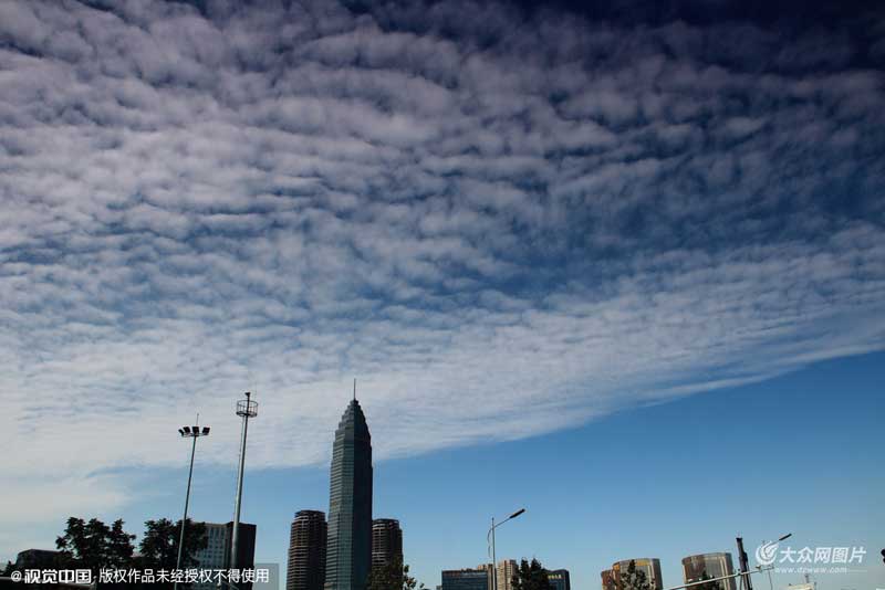 2015年12月4日,浙江紹興天空現(xiàn)魚鱗云。今年受厄爾尼諾影響,與往年相比,紹興冬季的氣溫明顯比同期要高,偶爾還會出現(xiàn)類似夏季的風景(與整天霧霾籠罩、灰蒙蒙一片的冬季完全不同)。