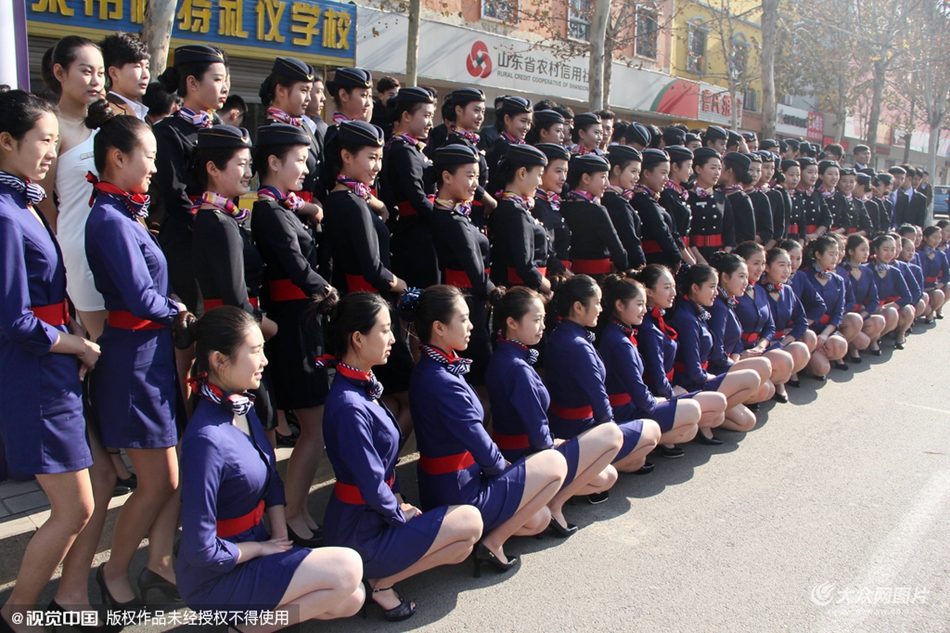2015年12月4日,山東濱州,參加藝考的高三女生身著空姐制服拍合照。當(dāng)日,山東省濱州市一家藝考培訓(xùn)學(xué)校的百余名高三女生不畏嚴(yán)寒,冒著零下四度的低溫裸露大腿拍攝空乘制服合照,不少過(guò)路司機(jī)索性停車(chē)拍照圍觀(guān),只為一睹壯觀(guān)美腿陣容。