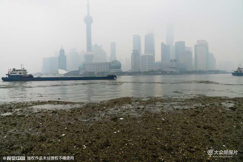 2015年12月21日早晨,上海外灘景觀水域出現(xiàn)成片水葫蘆,水葫蘆伴隨著一些雜物順著黃浦江水不斷向下游漂浮。