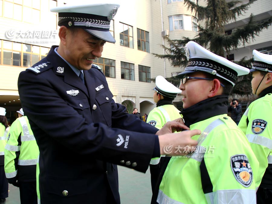 濟南經五路小學有了“萌芽交警隊” 查住家長違法將大屏通報 (/9)