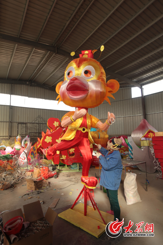 1月14日,隨著猴年春節臨近,在位于濟南市中區黨家莊的迎春花燈會制作基地,工人們正在緊鑼密鼓地進行花燈扎制工作,到處是已經扎成半成品的花燈。大眾網記者 王長坤 攝