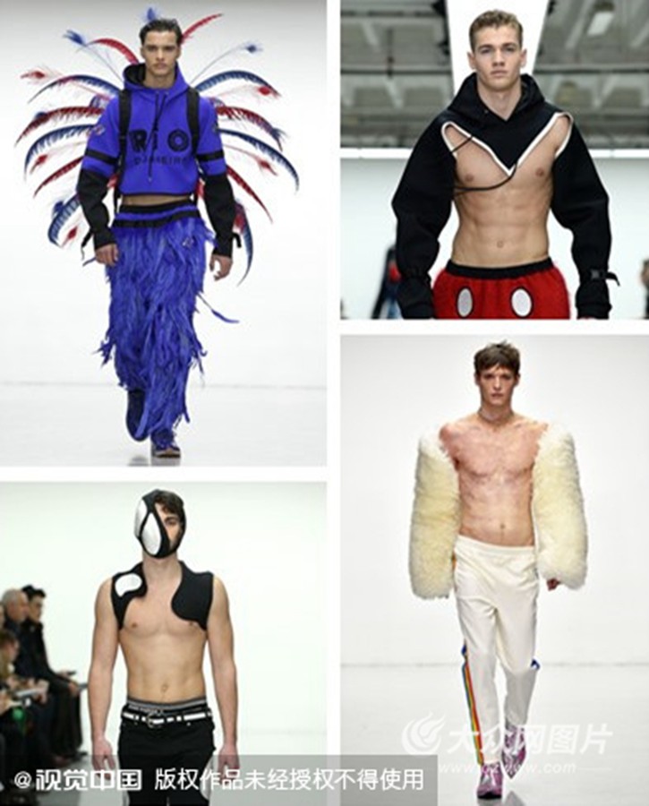 “有毒”網(wǎng)劇《太子妃升職記》火的不行,其中的時(shí)尚攝影師作為導(dǎo)演也山寨了許多男裝周的大膽look,不僅劇情搞笑,演員顏值也頗高。本次16秋冬男裝周,也有一些另類(lèi)大膽悶騷的裝扮,被網(wǎng)友吐槽的“五毛劇組”,《太子妃》2都可以用上啦。圖為2016秋冬倫敦男裝周秀場(chǎng)。