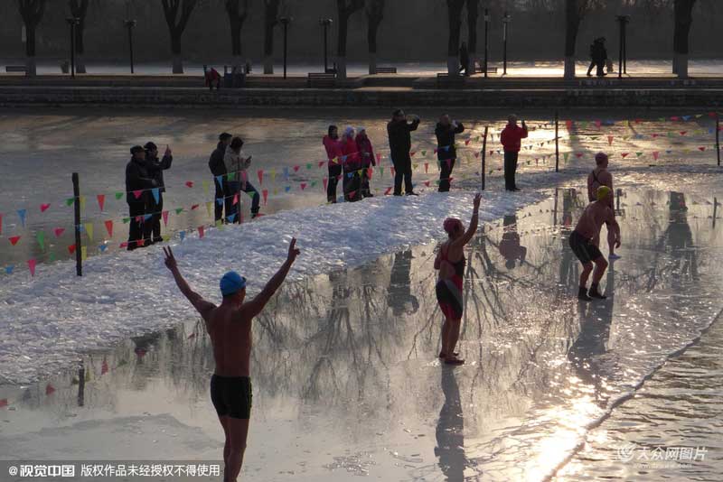 2016年2月11日,猴年大年初四,沈陽北陵公園,當天,沈陽最高氣溫8℃,空氣質量良好,特別適合人們外出及戶外活動,沈陽市的冬泳愛好者更是異常活躍,聚集北陵公園,以他們特有的健康的生活方式慶祝猴年新春。