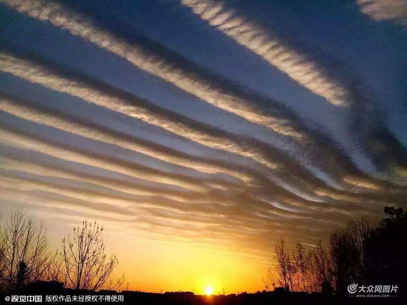 2016年2月17日,江西婺源、景德鎮(zhèn)傍晚天空中開始出現(xiàn)美麗的波浪狀云彩。