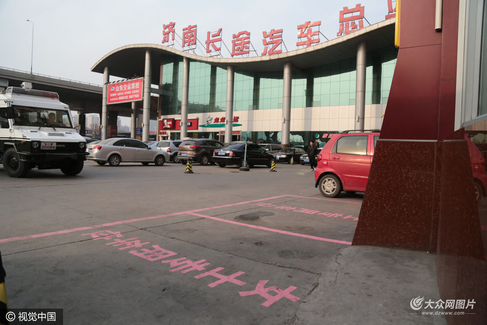 2016年3月8日,山東濟南,隨著3.8婦女節的到來,總站特別在東停車場推出“女士專用停車位”,并用亮麗的粉紅色劃出輪廓,標有“女士專用”字樣,以便女性旅客朋友清晰辨認。全新設置的女士專用停車位與其他車位相比,面積寬敞,尺寸有所增加,且位置顯要,更加方便了女性旅客朋友停放車輛。柏蕾/視覺中國