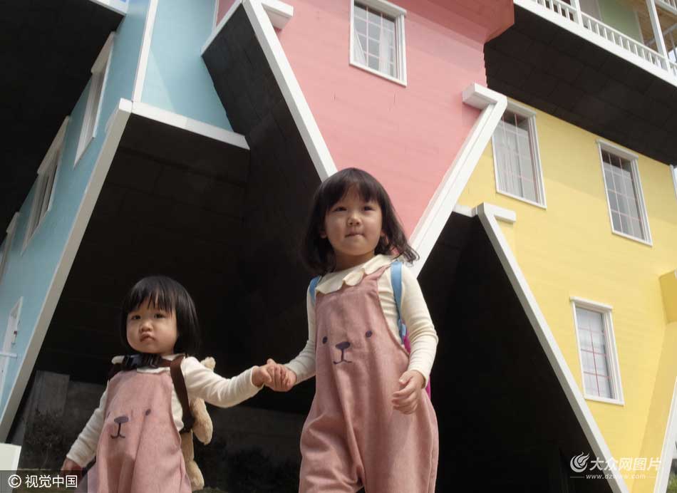 2016年3月8日,臺北,游客參觀顛倒屋。