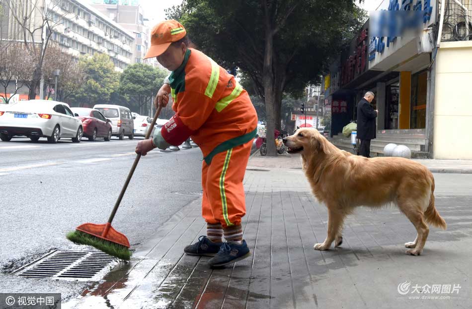 進入3月,氣溫回暖,成都市玉沙路上,一幕溫暖了過往行人的場景反復出現(xiàn)——人行道上,一名環(huán)衛(wèi)大姐躬著背,掃起垃圾,身后,一只金毛狗寸步不離地跟上。一旦瞧見礦泉水瓶,金毛就撲過去,叼起瓶子后,跑回環(huán)衛(wèi)工身邊邀功……