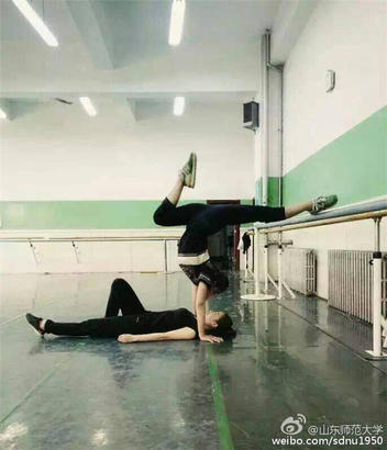 “高校版A4腰”不如一張壁咚照!近日山東師范大學微博發布照片,上演獨特的“高校版壁咚”,瞬間秒殺曾經網絡上的其他壁咚照片。