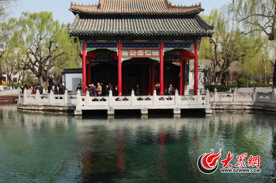 3月23日,游客在濟(jì)南趵突泉畔賞泉拍照。當(dāng)日,濟(jì)南趵突泉實(shí)時(shí)水位降至27.52米,跌破27.60米的紅色警戒線,面臨停噴危險(xiǎn)。大眾網(wǎng)記者 王長(zhǎng)坤 攝