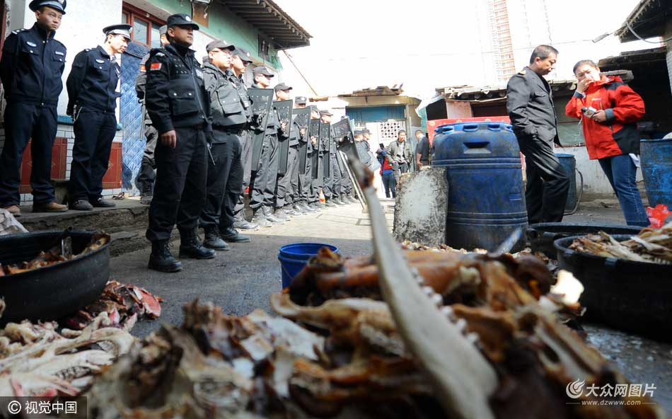 2016年3月28日,甘肅蘭州,根據(jù)群眾舉報,蘭州市七里河區(qū)食品藥品監(jiān)督管理局聯(lián)合轄區(qū)城管街道派出所等單位在蘭州市七里河八里鎮(zhèn)一舉端掉兩個無證經(jīng)營肉食品加工黑窩點。現(xiàn)場查扣非法加工肉食品上千斤。當日下午14時,執(zhí)法人員一行人找到了該肉食品加工黑窩點,還沒有推開生產(chǎn)院落的門,一股惡臭已迎面撲來。院內(nèi)的生產(chǎn)環(huán)境令人乍舌,地面上到處是污物,待加工的肉食品隨意堆放,泡在容器里待加工的動物內(nèi)臟表面浮著一層白色泡沫。目前,涉案人員及加工設備已被控制,此案正在進一步調(diào)查之中。