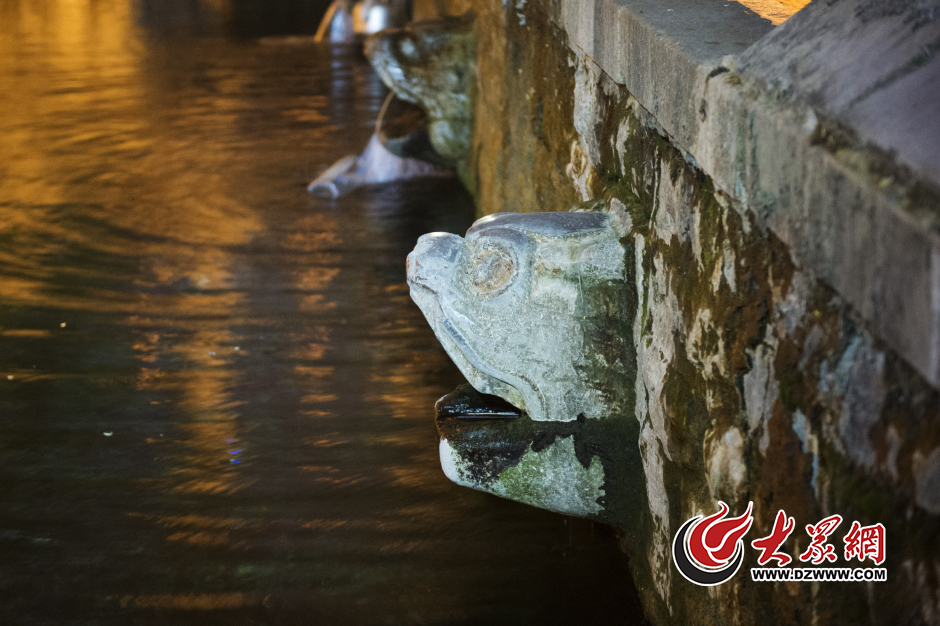 4月1日晚8時(shí)18分,濟(jì)南黑虎泉最西側(cè)獸頭滴水似垂涎,已經(jīng)處于間歇性停噴狀態(tài)。當(dāng)日,黑虎泉地下水位降至27.45米,而根據(jù)規(guī)律,其水位降到27.50米以下,最西側(cè)獸頭隨時(shí)可能有停噴的危險(xiǎn)。大眾網(wǎng)記者 王長(zhǎng)坤 攝