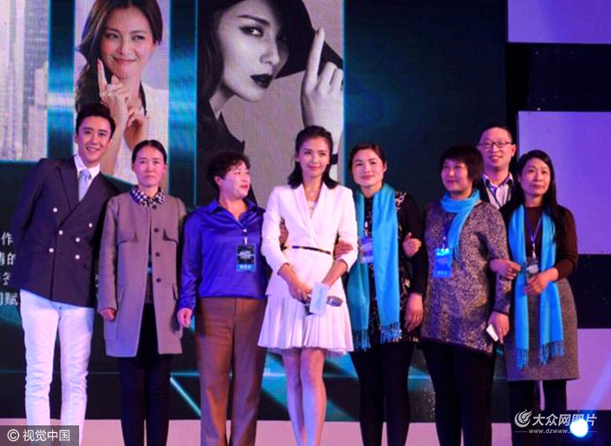 日前,劉濤在濟南為某企業代言出席見面會。她身穿白色西服,內搭白色百褶連衣裙,外系金色腰帶,腳踩銀色一字帶高跟涼鞋,女王范十足,嘟嘴賣萌更顯調皮。