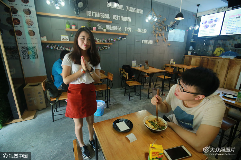 2016年5月5日,重慶,在江北九街有一家小面館,不僅面條好吃,顧客還能見到女神“高圓圓”。長得神似女神“高圓圓”的美女老板,已經火爆朋友圈,不少食客都是來“偶遇”女神的。