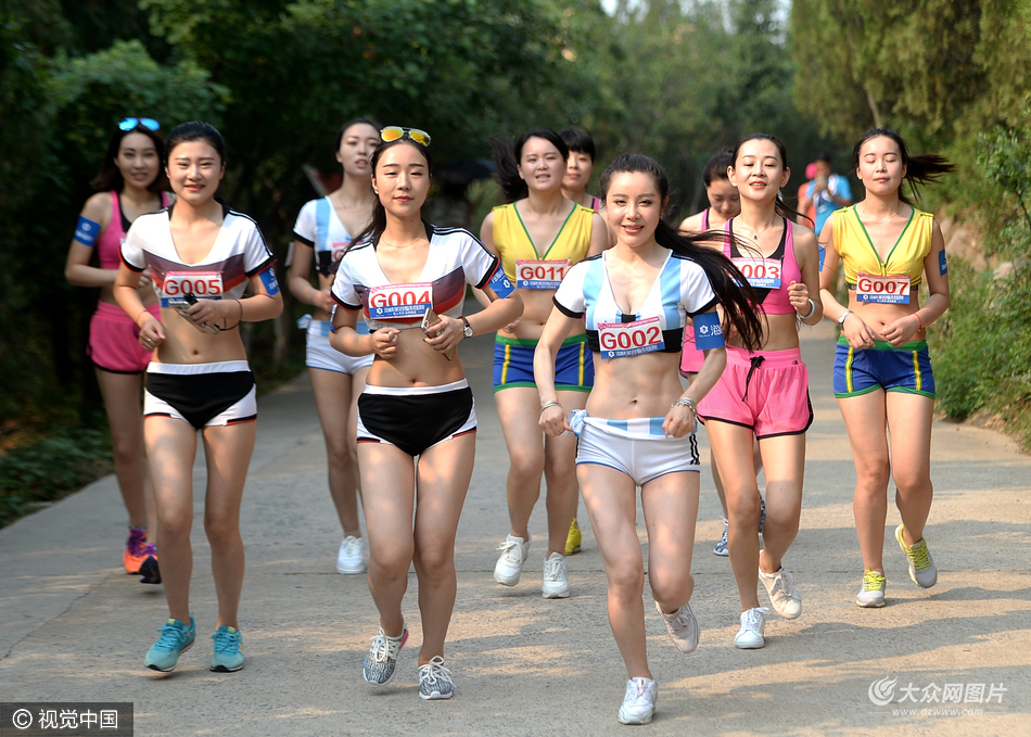 2016年06月19日,山東省濟南市舉辦女子時尚健康跑,10多名女孩身穿比基尼或性感足球運動裝參加6公里的長跑比賽,5名濟南大媽組成閨蜜團,身穿花衣打,披著花紗巾參與長跑。