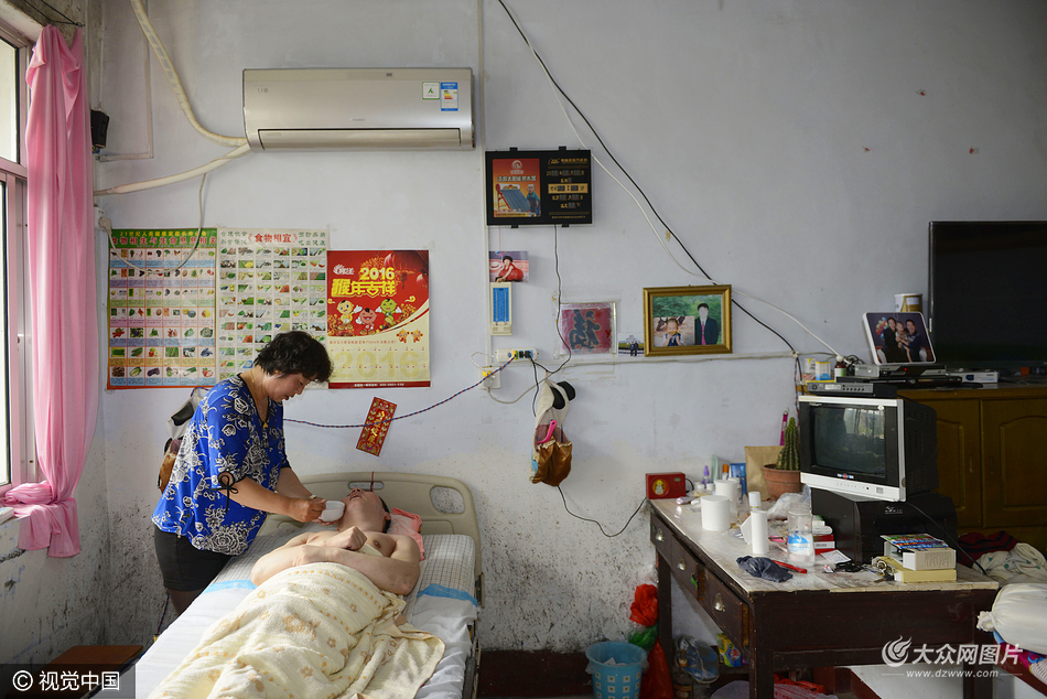 2016年6月20日,山東省日照市東港區西湖鎮秋實園村,陶桂玲為沒有任何血緣關系的植物人兒子劉明喂食營養液。