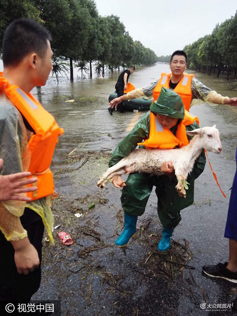 2016年7月3日,安徽當涂縣,現(xiàn)代農(nóng)業(yè)示范園水情告急。接到救援指令后,當涂縣公安局城東派出所及巡防大隊民警緊急出動,駕駛皮劃艇,向水中進發(fā)。經(jīng)過2個多小時奮戰(zhàn),民警安全轉(zhuǎn)移受困群眾5人。