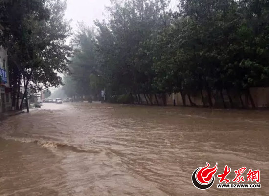暴雨使得黨楊路路段積水嚴重,路面如同一條寬闊的大河。