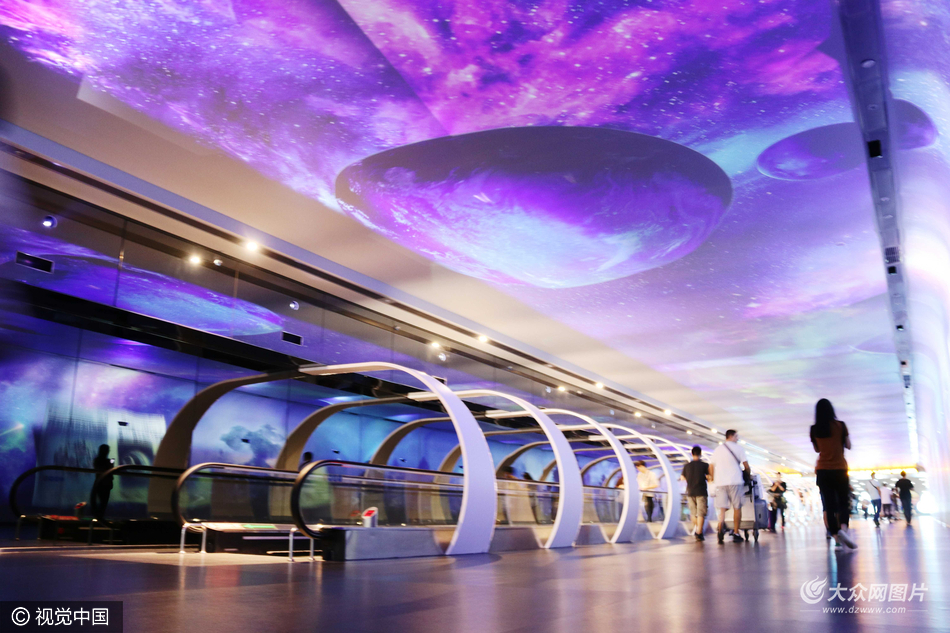 2016年10月22日,廣東省廣州市,近日,白云國際機場的“時空隧道”建成開放,據悉該“時空隧道”全長200多米,空間面積超過2500平方米。這條借助新科技打造的“動靜結合、人景結合、虛實結合”炫酷時空長廊,集公共服務、藝術展示、廣告發布于一體,是白云機場首推的融媒體模式大型藝術體驗新空間,在全國機場尚屬首創。