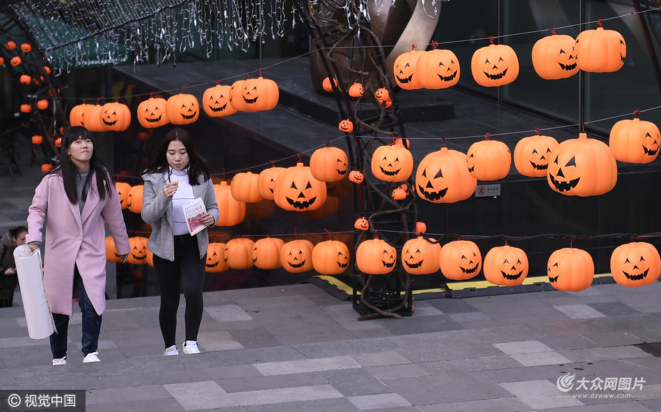 2016年10月22日,遼寧省沈陽市,由百余個南瓜組成的“南瓜陣”亮相沈陽街頭,吸引市民目光。