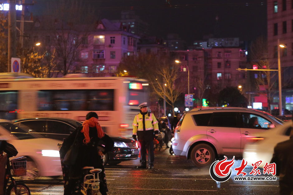 11月21日,受較強(qiáng)冷空氣影響,泉城濟(jì)南出現(xiàn)持續(xù)降雨。傍晚5時(shí),濟(jì)南市區(qū)烏云壓境,街頭狂風(fēng)大作,一名交警在風(fēng)雨中指揮交通。據(jù)濟(jì)南氣象局各監(jiān)測點(diǎn)實(shí)時(shí)監(jiān)控,今天下午17時(shí),市區(qū)大部分地方氣溫已降至3度以下。大眾網(wǎng)記者 王長坤 攝