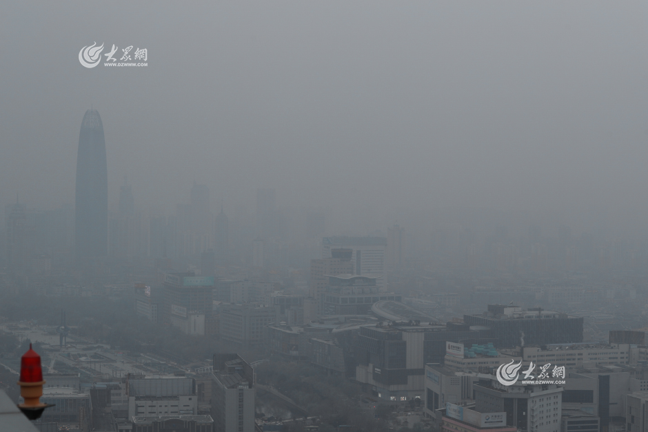 12月12日,濟(jì)南,整個(gè)城市都籠罩在一片灰蒙蒙之中。早晨8點(diǎn)30分,大眾網(wǎng)記者從150米高空俯瞰下去,遠(yuǎn)方的天空一片朦朧,好像遮擋了一層灰色玻璃。 大眾網(wǎng)記者 王長(zhǎng)坤 攝