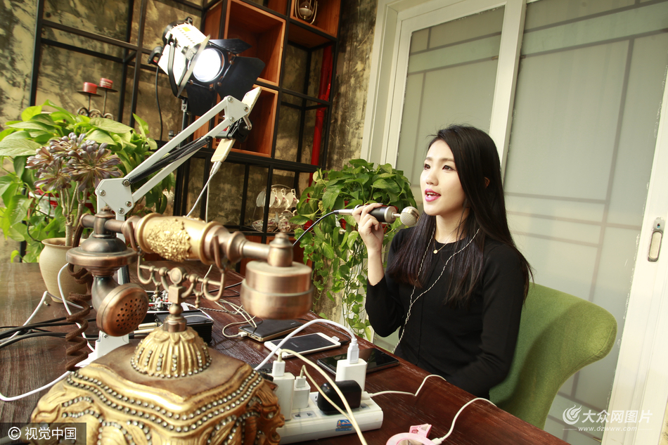 2016年12月9日,陜西西安,霧霾包圍下的西安,冷風瑟瑟。城墻畔的環城公園里,一群穿著單薄的時尚男女正在拍攝,有的打光,有的化妝,有的整理服飾,為了增加風吹衣服和頭發飄逸的感覺,還有人專門用手拉起衣服或用反光板不停扇風。 網絡主播熊貓通過手機網絡進行直播。她以前是一名空姐,后辭職當起了網絡主播。