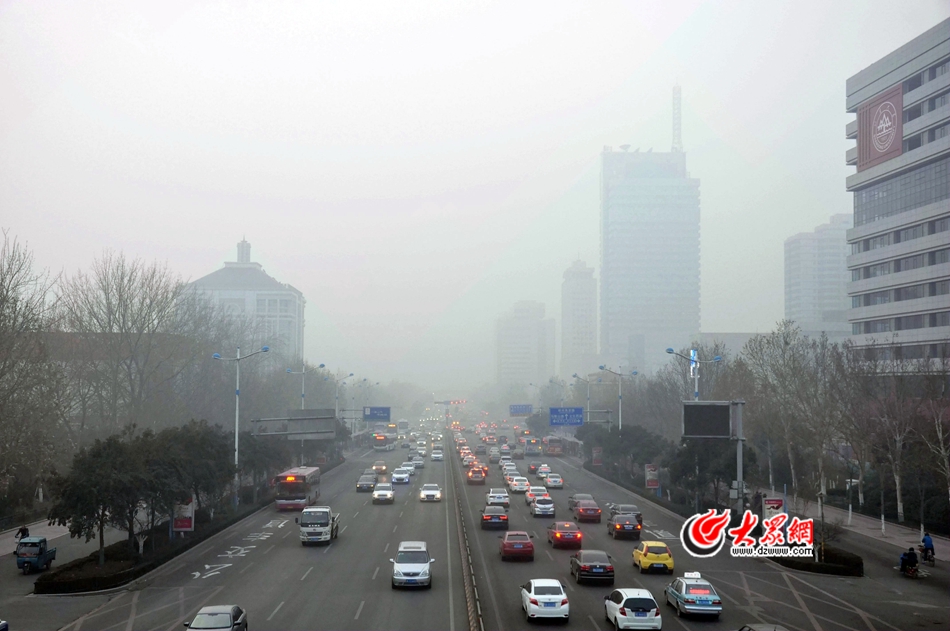 12月20日,根據山東城市空氣質量實時監測顯示,截至20日8:00,濟南陷入嚴重污染。圖為經十路上車輛川流不息。實習記者 劉玉鳳 攝