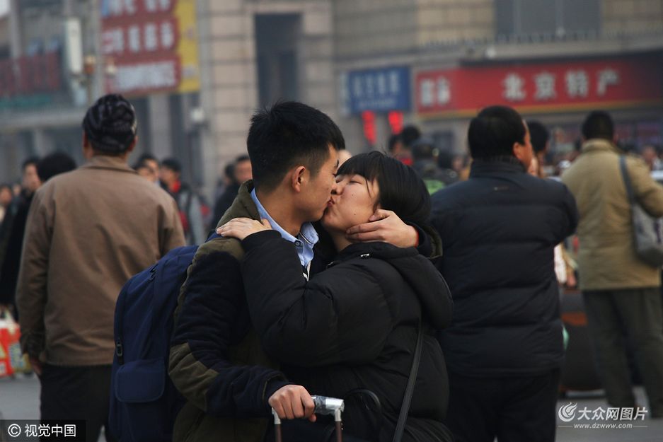 春運臨近,辛苦了一年的農民工們開始收拾起大包小包的行囊提前返鄉。對于年輕的農民工情侶來說,過年回家則意味著分別,一對小情侶在北京站前廣場足足親吻了半小時還依依不舍。