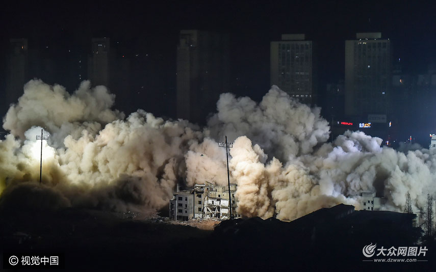 1月21日晚11時50分許,隨著一聲令下,武漢漢口濱江國際商務區(qū)內的19棟樓房在隆隆爆破聲中順次倒下,全過程共歷時約10秒。