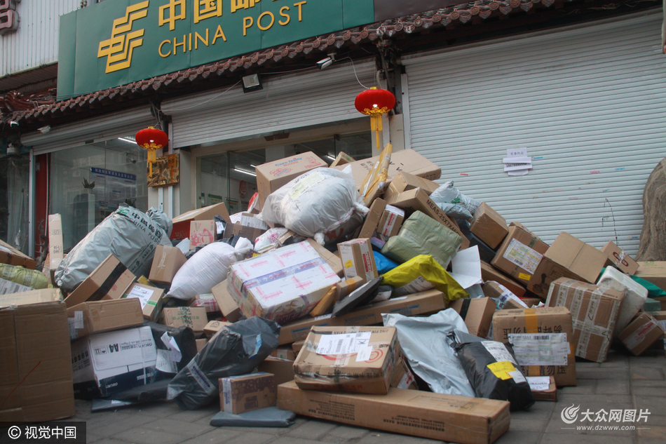 2017年1月24日,在濟南歷下區按察司街附近一郵局大門口,千余件郵件“堆積如山”。