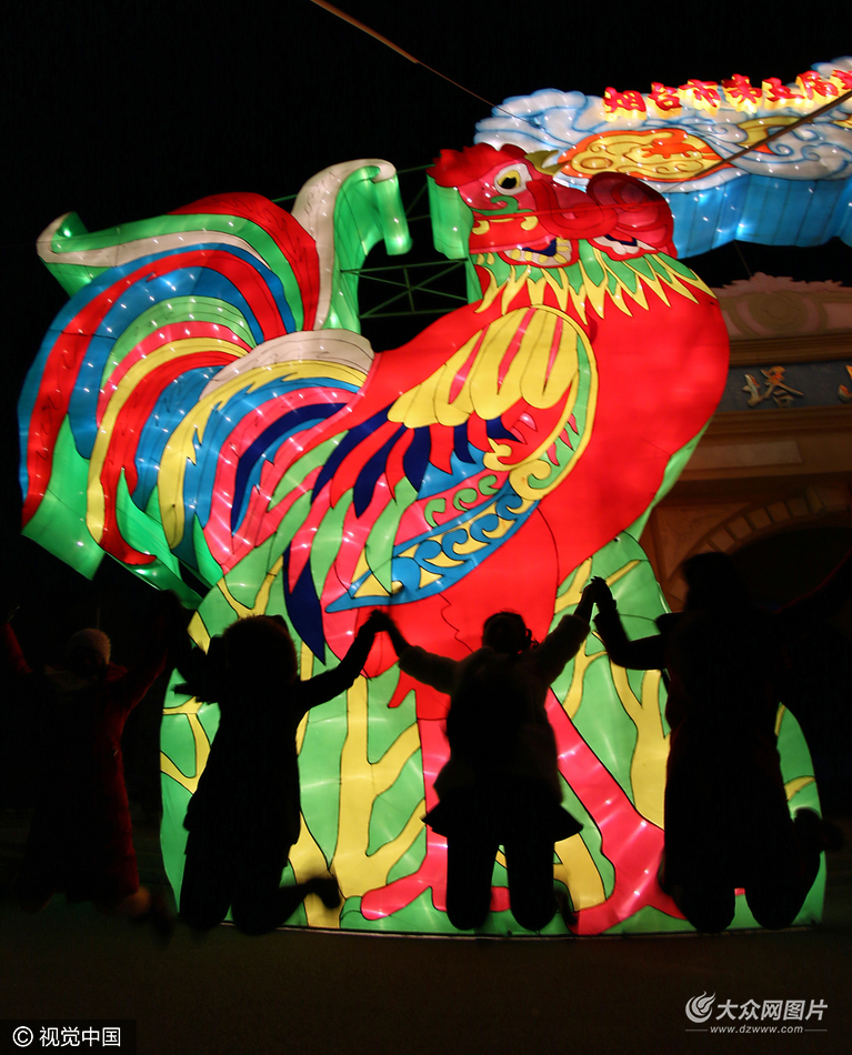 2017年2月10日,山東省煙臺市公園、廣場、街道等處的花燈點亮,璀璨奪目。
