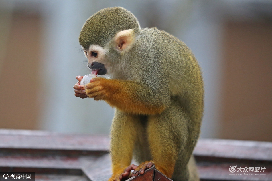 2017年2月10日,重慶,永川樂和樂都野生動物世界的松鼠猴們吃起了“湯圓”,提前過起了元宵節。飼養員為松鼠猴準備了桂圓充當湯圓,放到有水的盆子里,松鼠猴們爭先恐后地前去搶食,引得不少游客觀看拍照,一個個囫圇吞棗的表情更讓人捧腹大笑。幸運游客在工作人員的許可下,親自將“湯圓”喂給松鼠猴,與它們來了一次親密合作。