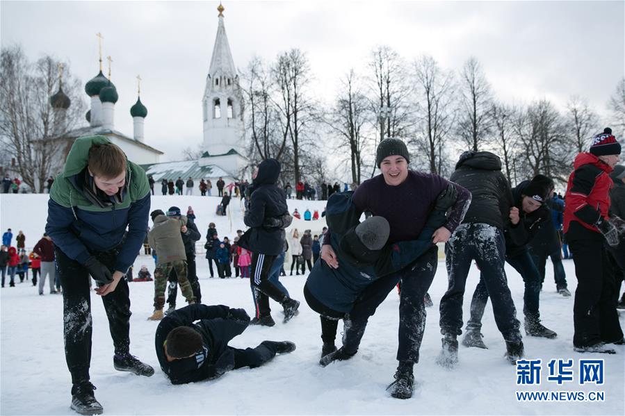 2月25日,在俄羅斯雅羅斯拉夫爾,人們?cè)谘┑乩锼樱瑧c祝“謝肉節(jié)”。 “謝肉節(jié)”又稱送冬節(jié),俄羅斯各地民眾在節(jié)日期間載歌載舞,做游戲、吃薄餅、燒稻草人,迎接春天的到來(lái)。 新華社記者白雪騏攝