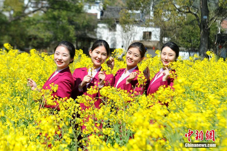 3月2日,南昌鐵路局的高姐們,利用休息時間,來到被譽為“中國最美鄉村”的江西婺源縣踏青賞花。由于氣溫持續走高,江西婺源縣油菜花較往年提前了半個月開放,吸引了大量游客前往觀賞。為滿足春游旅客出行的需求,南昌鐵路局3月4日至3月5日(周末)加開南昌、福州至婺源3對“高鐵賞花專列”。劉占昆 攝