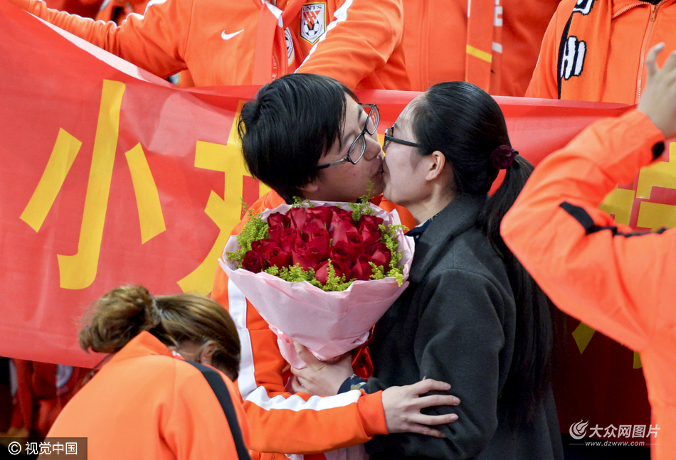 2017年3月4日,山東省,2017中超首輪,山東魯能Vs天津億利。球迷求婚成功場(chǎng)邊熱吻。