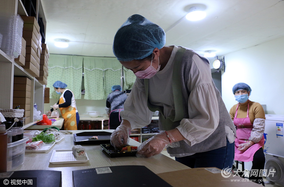 2017年4月16日,在山東省鄒城市,懷孕八個月的賈菲菲有時還會露上兩手,在工作室里為顧客制作壽司,有些老顧客熟悉她的手法。