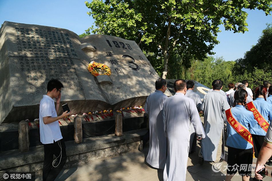 為紀念“五三慘案”89周年,警示民眾勿忘國恥、居安思危,5月3日上午10時,濟南市將組織第19次防空防災警報試鳴,同步組織全市大中小學進行防空防災應急疏散演練。圖為濟南社會各界人士在“五三慘案”紀念碑前悼念遇難同胞。
