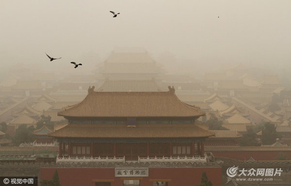 北京發布沙塵藍色預警 城區遭沙塵籠罩
