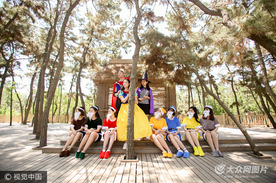 2017年5月21日,在山東省煙臺市經濟技術開發區37度夢幻海 ,魯東大學學生們拍攝“森林童話”主題另類畢業照,演繹白雪公主與七個小矮人的故事。