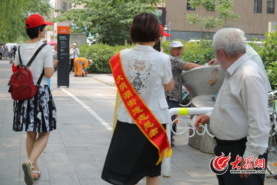 6月2日,在大明湖路上的一處泉水直飲點(diǎn),志愿者勸說打水者不要長時(shí)間占用直飲點(diǎn),接水者嘴上答應(yīng)著,確不肯離開。大眾網(wǎng)記者 王長坤 攝