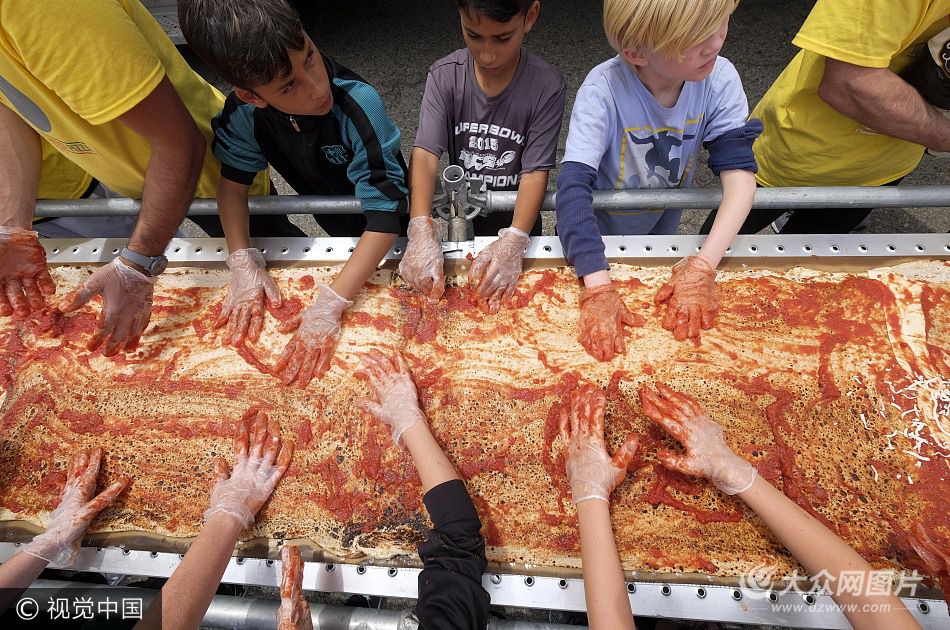 當(dāng)?shù)貢r(shí)間2017年6月10日,美國加州豐塔納 ,披薩制作者們制作了一個(gè)長(zhǎng)2.13公里的披薩,打破了2016年在意大利那不勒斯誕生的世界紀(jì)錄。