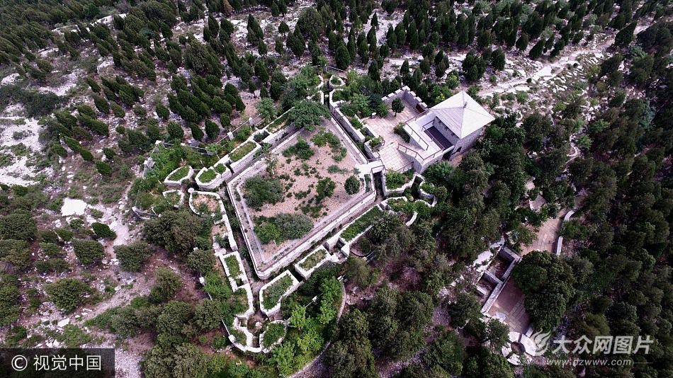 航拍濟南臥虎山山體修復工程