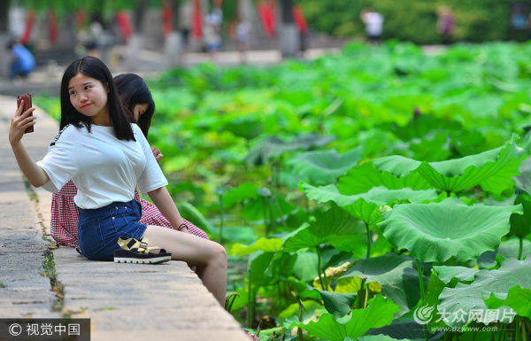 6月20日,濟(jì)南大明湖的荷花已經(jīng)開放。今年6月21日是二十四節(jié)氣中的夏至,標(biāo)志著盛夏時(shí)節(jié)的到來(lái)。所謂夏至到,荷花開,又是一年賞荷季。連日來(lái)濟(jì)南天氣轉(zhuǎn)熱,氣溫升高,大明湖內(nèi)荷花已悄然綻放,為泉城增添了濃濃的夏韻,映日荷花別樣紅”的風(fēng)光吸引了不少游客和攝影愛(ài)好者駐足觀賞留影。大眾網(wǎng)記者 王長(zhǎng)坤 攝