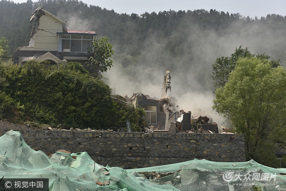 2017年6月21日,濟南南部山區西營鎮“青龍峪”別墅拆違打響“收官戰”,55800余平方米違建野別墅全部拆完。