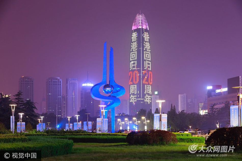 2017年7月1日,濟南第一高樓亮燈祝福建黨96周年和香港回歸20周年。